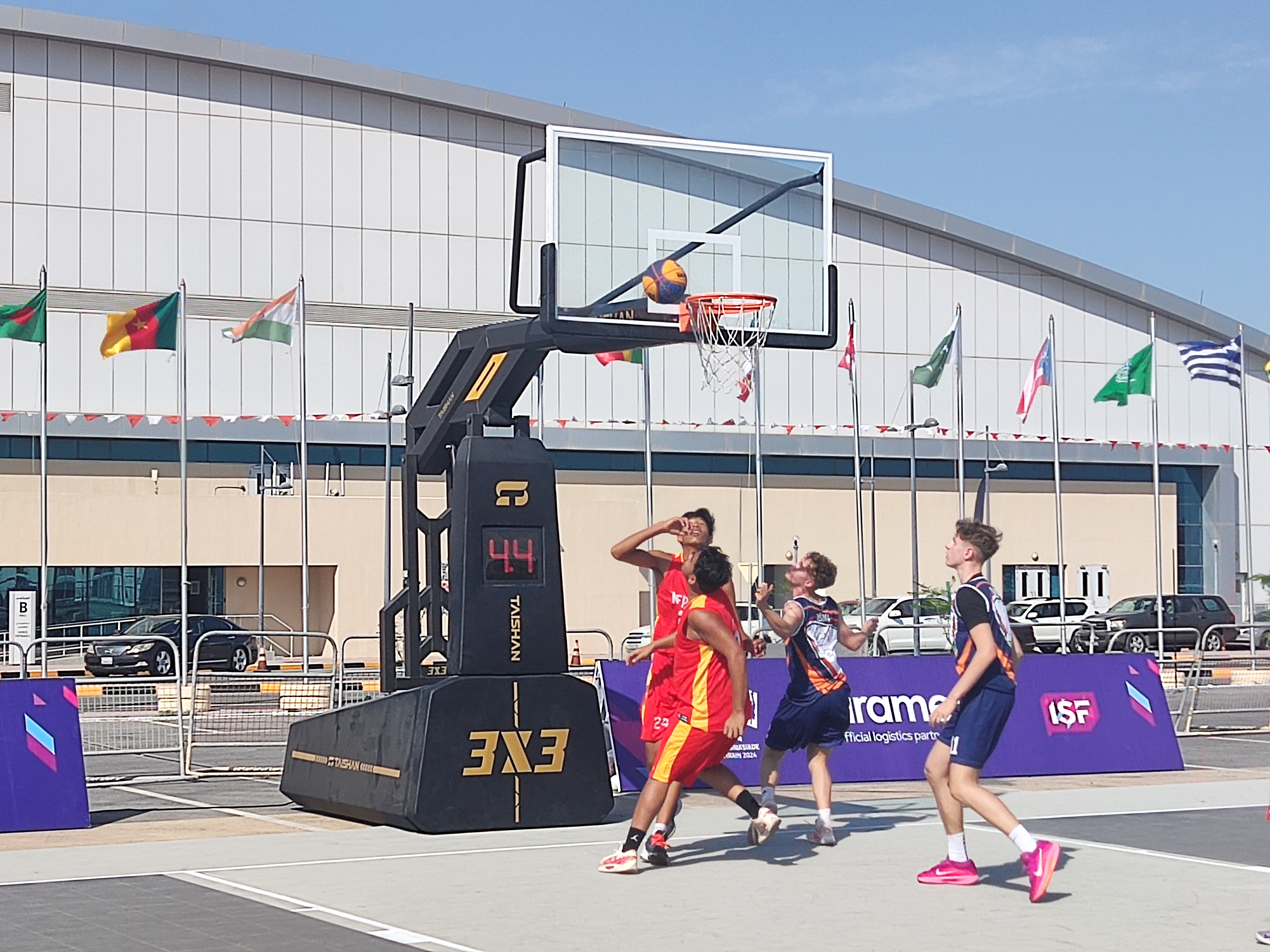 激烈角逐|yl8cc永利体育智能篮球架亮相巴林中夏会赛场
