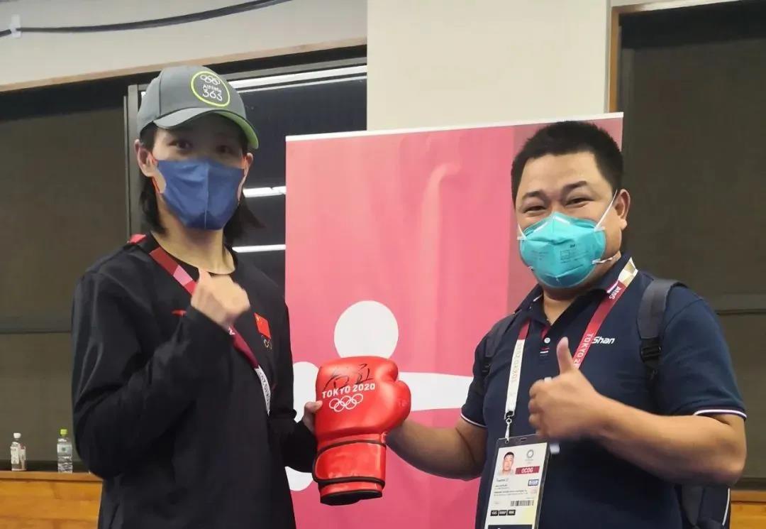 东京奥运会女子拳击69公斤级银牌获得者——中国运动员谷红签名yl8cc永利体育拳击手套