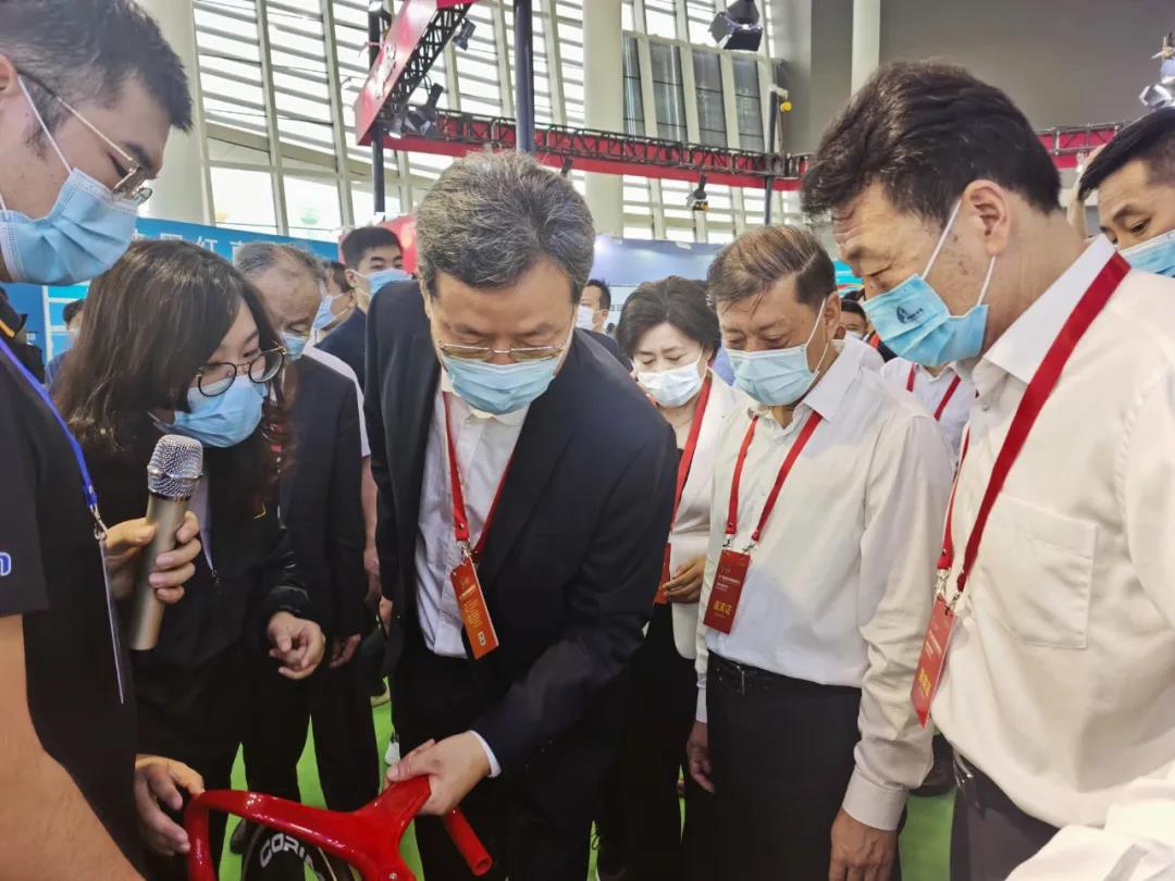 国家体育总局体育器材装备中心副主任王平,临沂市委书记王安德,临沂市委副书记、市长任刚,临沂体育局局长刘艳芬等领导莅临yl8cc永利体育展位参观
