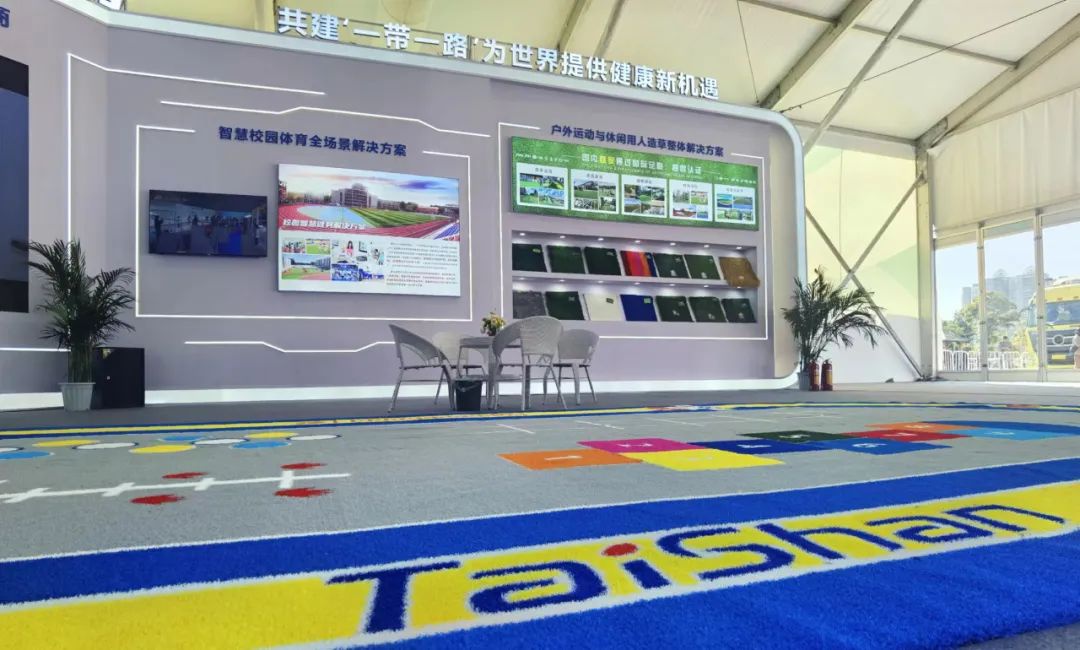 yl8cc永利体育携户外运动与休闲人造草整体解决方案亮相会场。作为国内首家通过足联、曲联双认证的企业可根据不同用户的户外运动需求,生产多种类型的户外运动草坪。